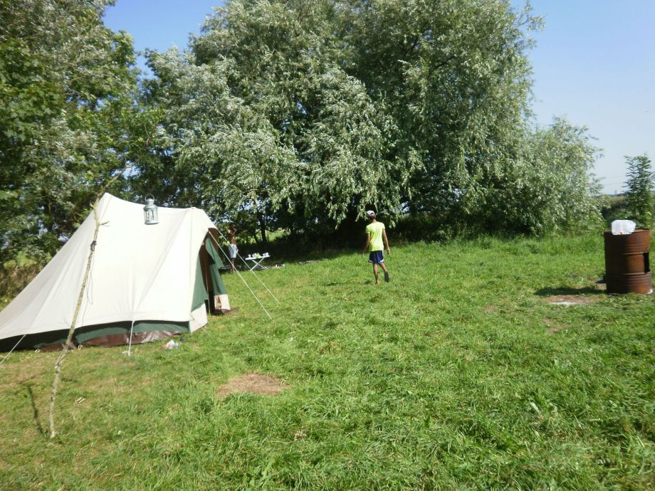 Naast onze omzoomde terreinen kun je ook in het open veld terecht of tegen de boomrand aan met vooral schaduw, maar wel met weids uitzicht. De terreinen zijn buiten Pinksteren en een enkel feest nooit vol. Douche en 2 toiletten, sober maar functioneel, bevinden zich resp. in hooischuur,( altijd open vanwege de zwaluwen) en loods.