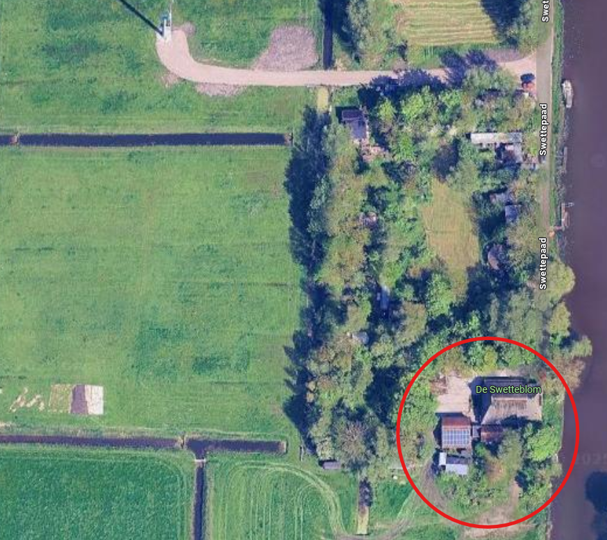 Routebeschrijving auto Heerenveen richting Leeuwarden, afslag Weidum-Wytgaard. Einde weg links, daarna rechts richting Weidum. Einde weg bij Weidum rechts. Voorbij twee afslagen naar Bears, halfverharde Swettepaad op. Eventueel twee hekken (voor paarden) zelf open maken.